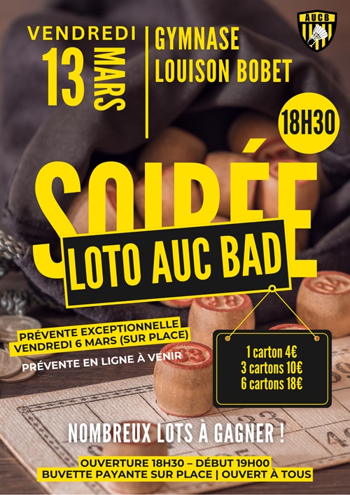Le vendredi 13 mars 2026, l’AUC Badminton a eu le plaisir d’organiser son premier loto associatif. Un événement sans précédent qui marque la volonté du club a toujours plus animer, développer, et partager des moments forts avec ses adhérents. Une vie de club précieuse et appréciée de tous !