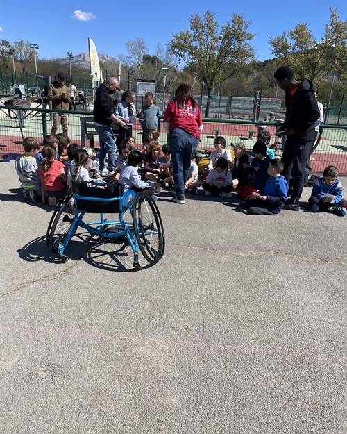 📌 Les enfants 5/10 ans se sont initiés à des parcours en fauteuil roulant, mettant en avant la coordination, la mobilité et l’adaptation dans l’espace.